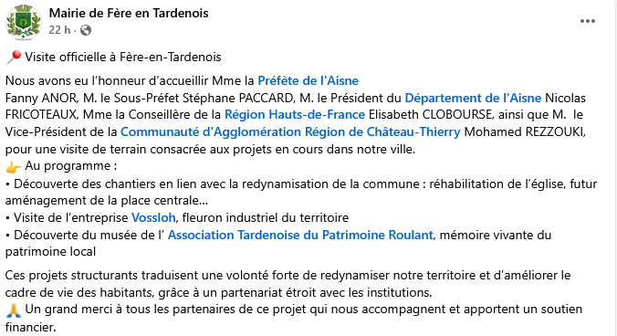 Le 12 juin et le 28 juin le petit camion Hotchkiss qui ressemblait au camion qui transportait les tuyaux autrefois a participé aux festivités du centenaire des entreprises TUBEST et CORDUX fabricants de différents tuyaux flexibles, installées à Epaux Bézu après avoir quitté en 2014 siège historique de Fère-en-Tardenois crée en 1925 par Monsieur Raymond de la TRAMERY site où se trouve notre musée.